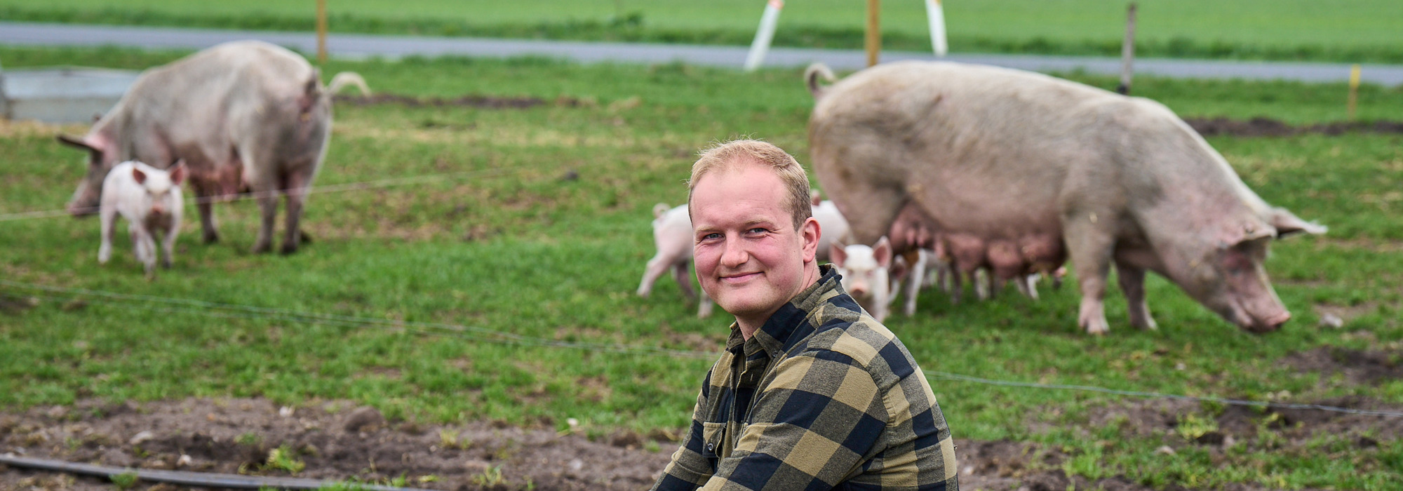 Med 350 søer og omkring 8.000 smågrise om året fører jeg stolt familiens økologiske tradition videre i tredje generation. Det er en stor glæde at se, hvor godt grisene trives, og jeg elsker at vise det frem.